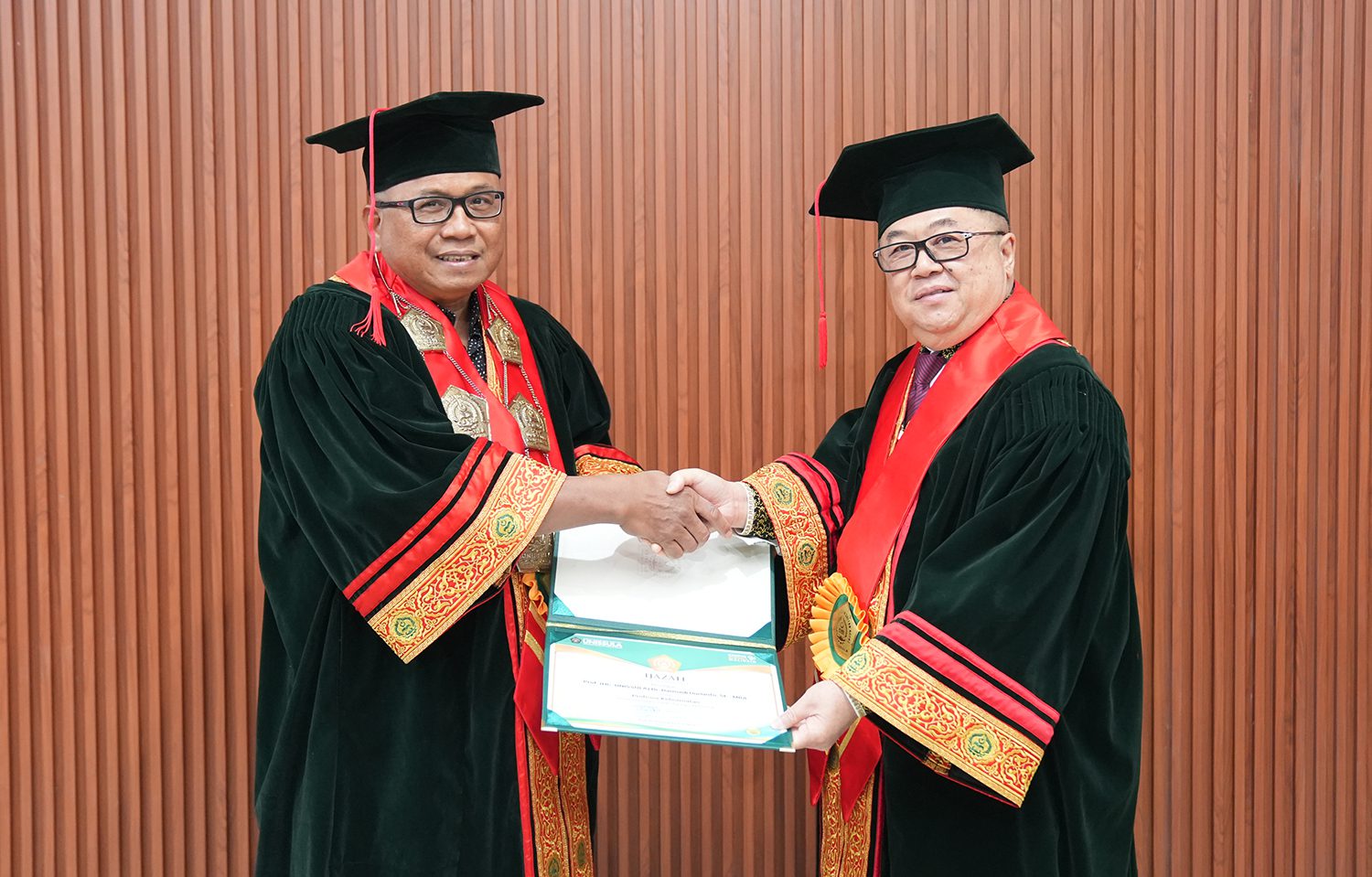 Dr Darmadi Durianto SE MBA menerima gelar profesor kehormatan dari Unissula. SK guru besarnya diserahkan langsung oleh rektor Unissula Prof Dr Gunarto SH MH di kampusUnissula, Sabtu (12/10/2024).
