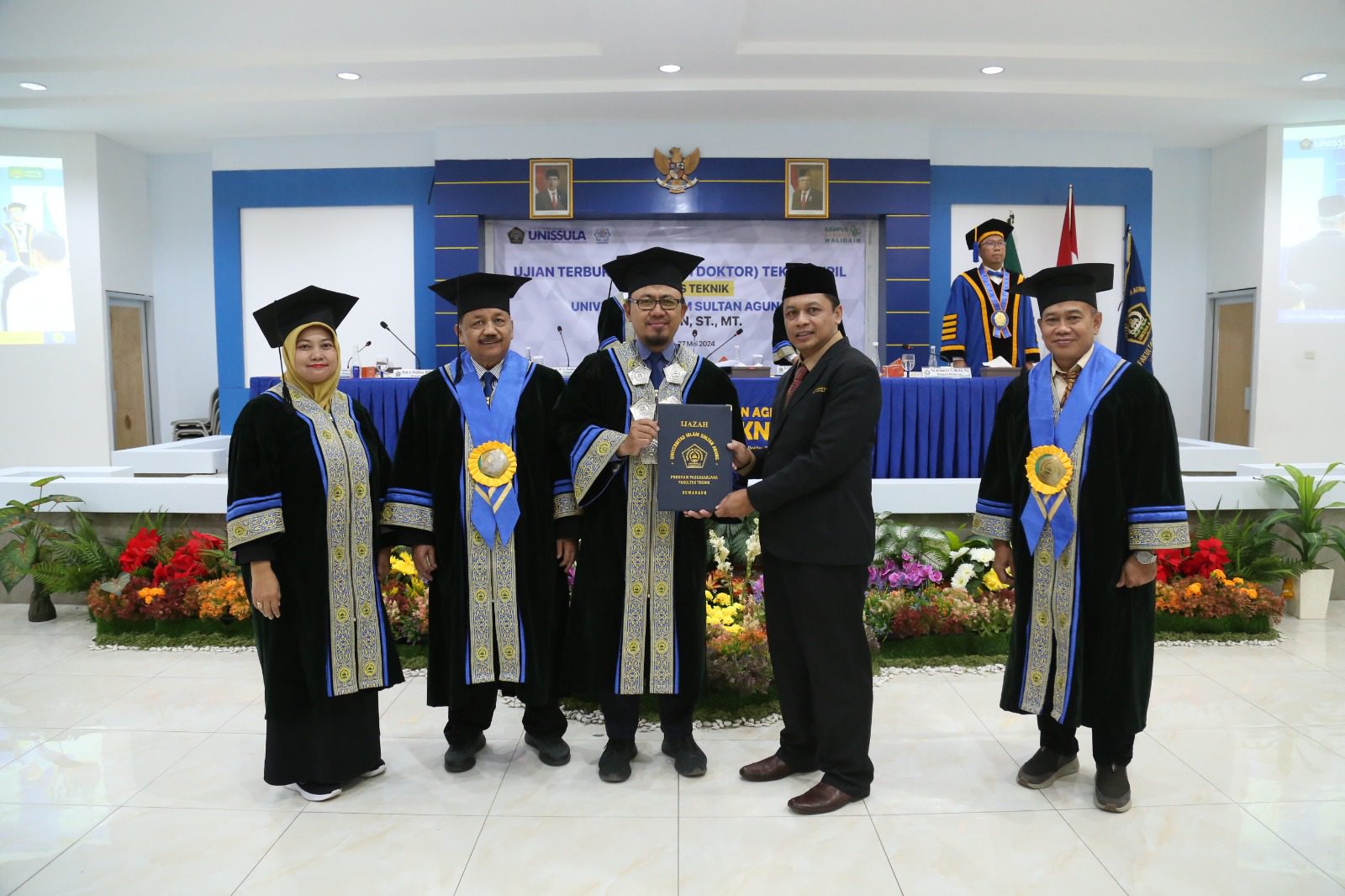 Sayfuddin ST MT, mahasiswa Program Doktor Teknik Sipil Unissula mengikuti ujian terbuka doktor di Fakultas Teknik Unissula pada Senin (27/5/2024). Ia mempresentasikan disertasinya yang berjudul model penilaian dan strategi pengelolaan tingkat risiko kegagalan bangunan dan pelaksanaan konstruksi berbasis aplikasi.