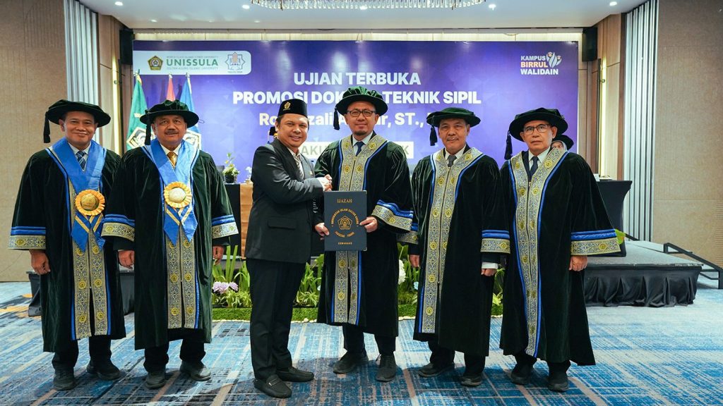 Roy Rizali Anwar mengikuti ujian terbuka doktor di Program Doktor Teknik Sipil (PDTS) Unissula, Sabtu (7/12/2024). Ia menyampaikan disertasinya yang berjudul model integrasidesain dan pelaksanaan pada pemilihan bangunan bawah untuk struktur gedung di atas tanahlunak.